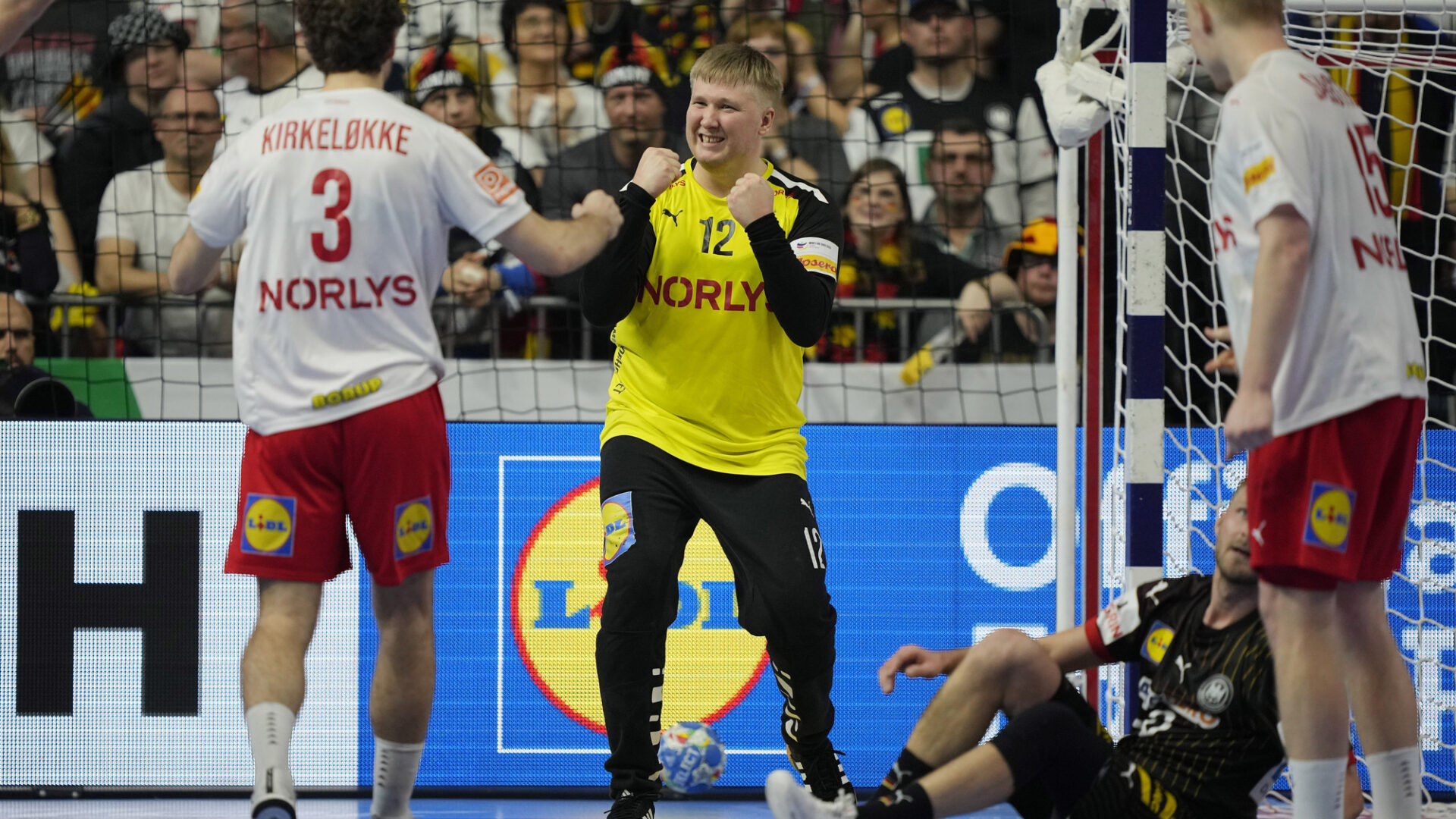 Tyskerne anført av et fysisk knalltøft forsvar og en utilnærmelig Andreas Wolff i mål ledet 14-12 til pause, men danskene storspilte etter hvilen og vant 29-26. Supermålvakt Emil Nielsen ble igjen svært sentral for Nikolai Jakobsens meritterte menn.