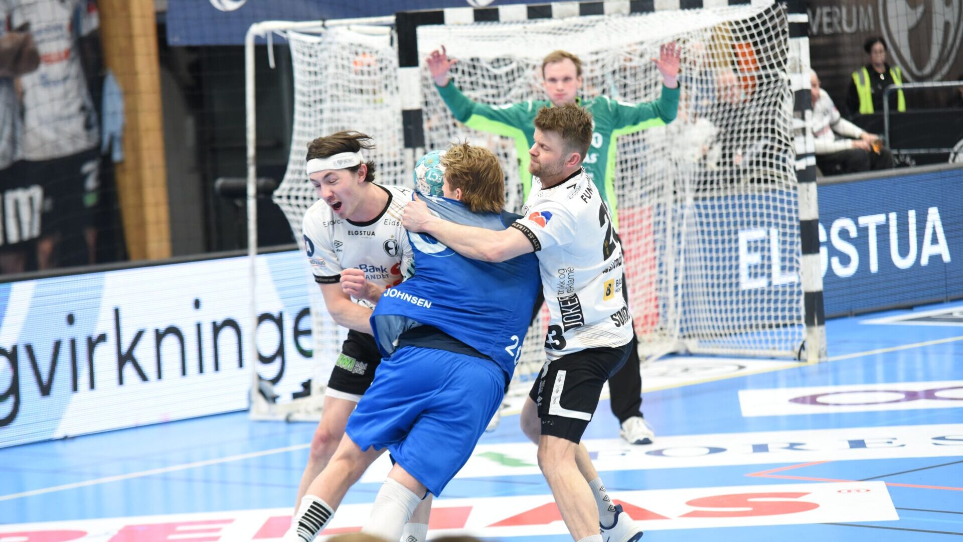Elverum fikk en fin start på den 2.omgangen. Fra å lede med ett til pause så ledet plutselig Elverum 21-18 etter fire minutter. Bakerst hadde ny signeringen Vegard Bakken Øien kommet inn for Morten Nergaard, og Øien leverte noen redninger innledningsvis.