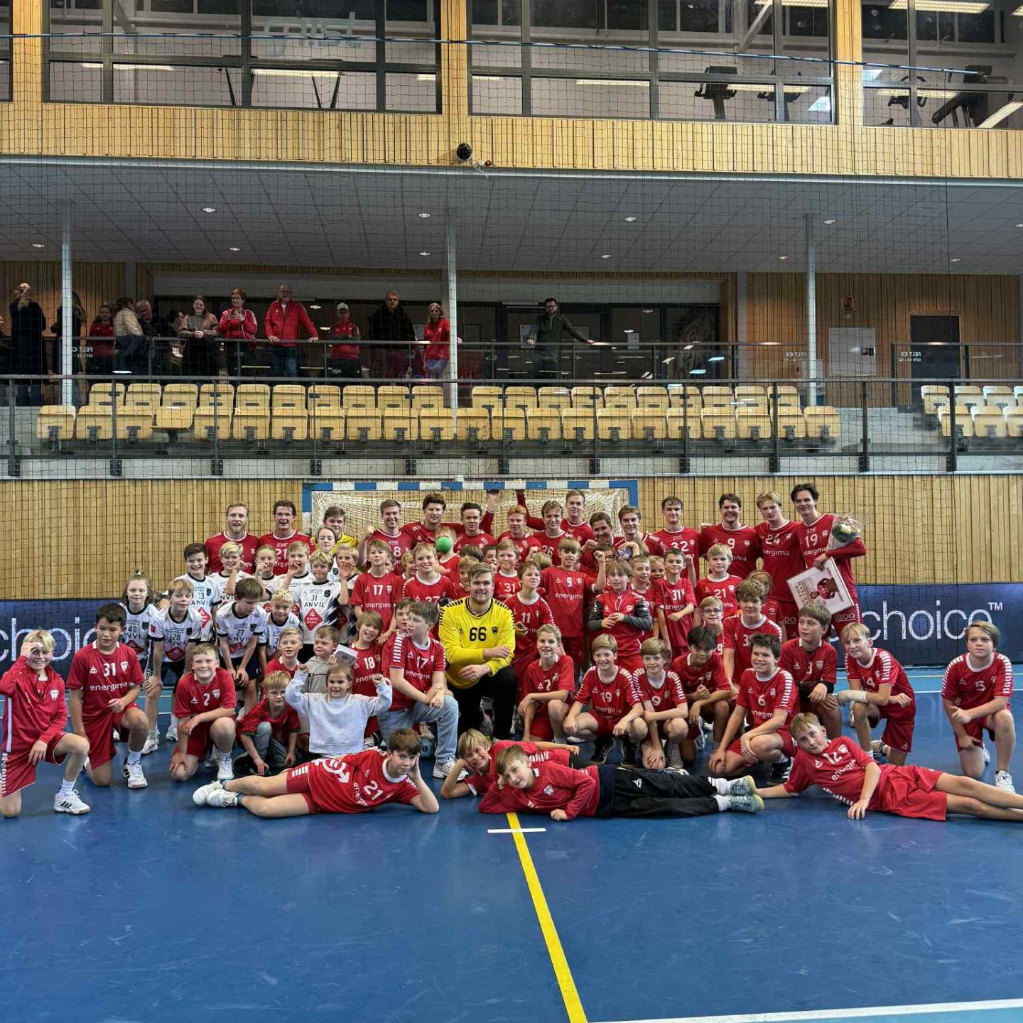 For søndagens kamp var en kronekamp, og nesten 600 tilskuere møtte opp for å lage god stemning. Med salg av hamburgere, loddtrekning av flotte premier, en flokk maskotter, showkamp med Haslum-ØHIL G2015 i pausen, og seier over Grenland ble det en flott dag i arenaen. Og etter kampen takket vi av to Haslumlegender; Håvard Bjørnskau Johannesen og Vegard Sørlie Tennfjord. Håndballpresident Randi Gustad delte ut plakett og blomster, og en flott hyllest til Håvard og Vegard ble vist på kuben foran et publikum som ble stående og hylle både nåværende og avtakkede spillere.