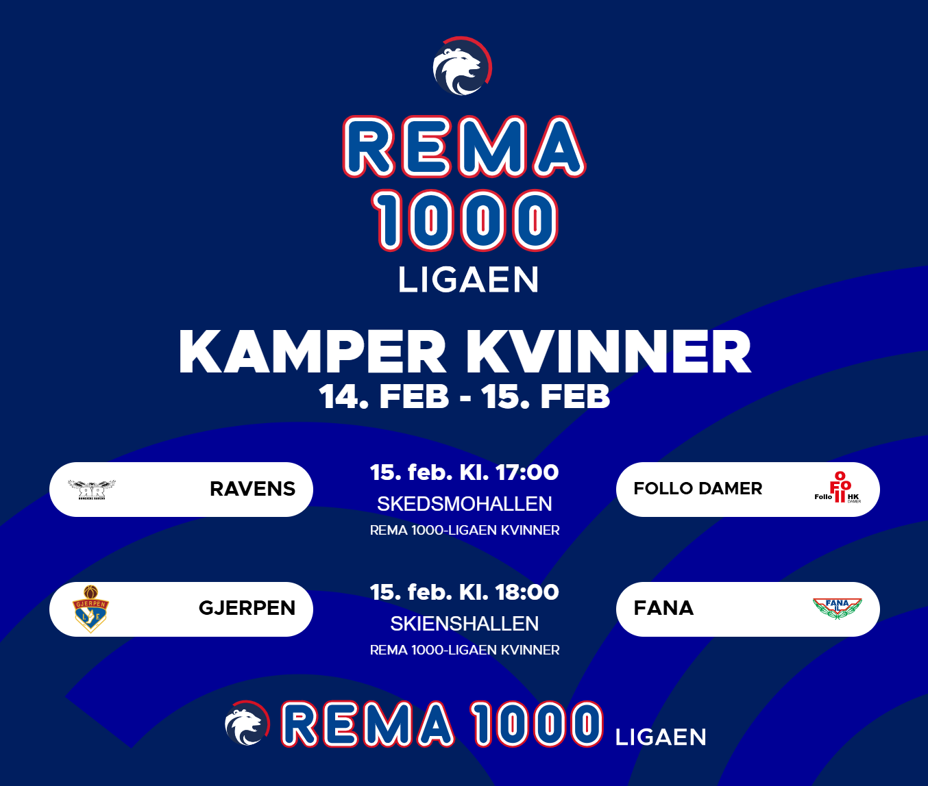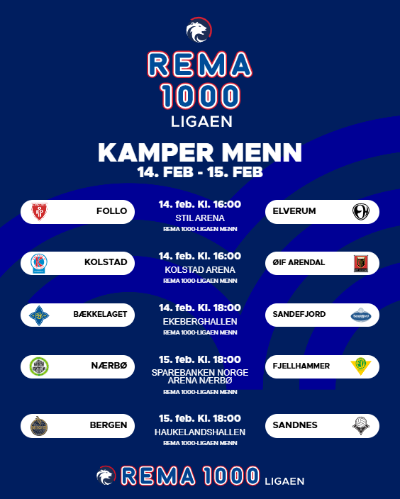 Her finner du oversikten over hvor og når kampene spilles i REMA 1000-ligaen for kvinner og menn i helgen.