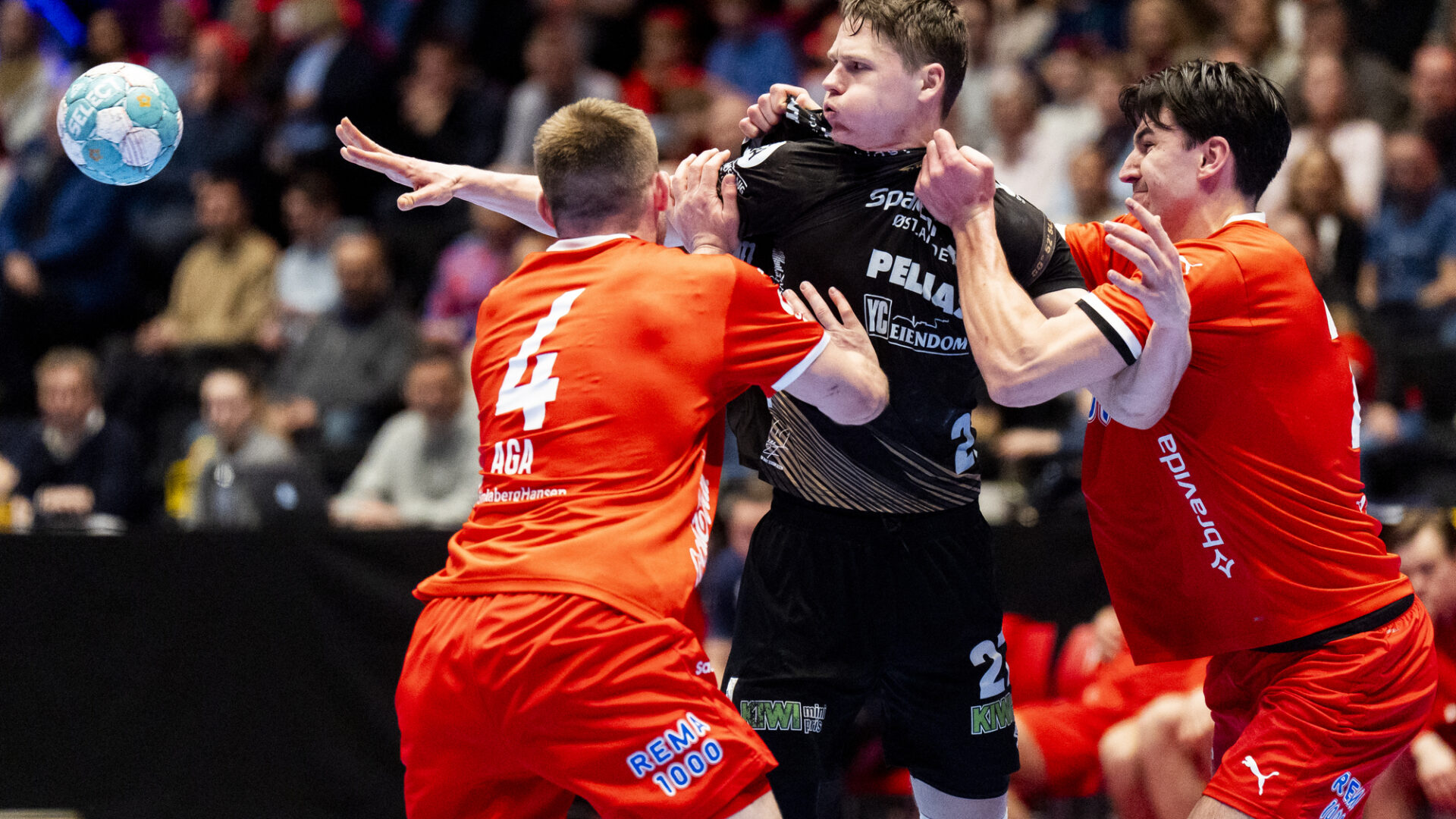 Elverums Péter Lukács ble nylig kåret til årets publikumsfavoritt i REMA 1000-ligaen. Her i aksjon i borteoppgjøret mot Vetle Eck Aga, Simen Ulstad Lyse og Kolstad i Trondheim i mars. Trønderne vant det oppgjøret 29-28. Onsdag møtes lagene igjen i den første sluttspillfinalen. Foto: Ole Martin Wold / NTB