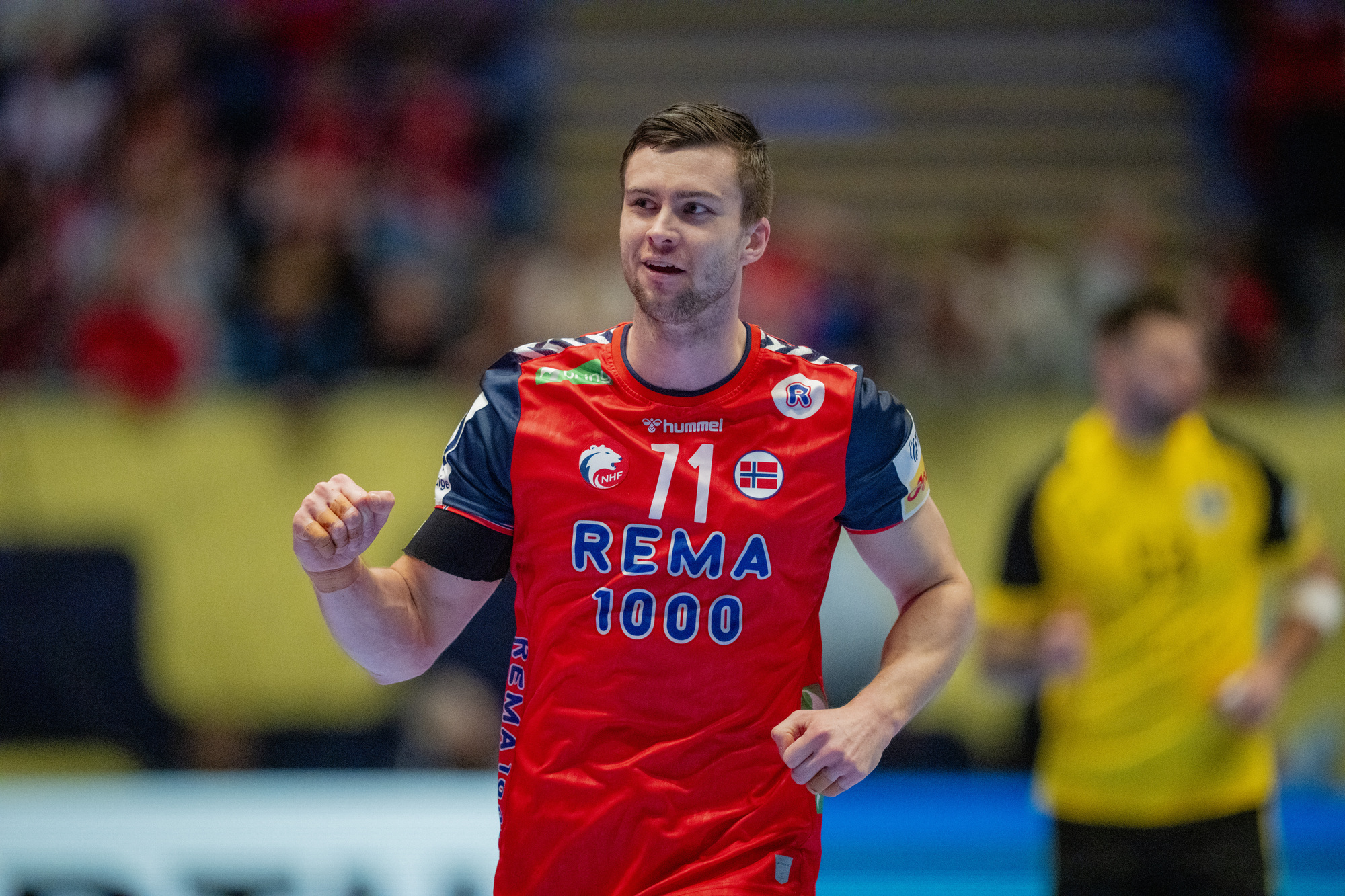 Alexander Blonz under EM i håndball mellom Norge og Ukraina i Unity arena. Foto: Stian Lysberg Solum / NTB