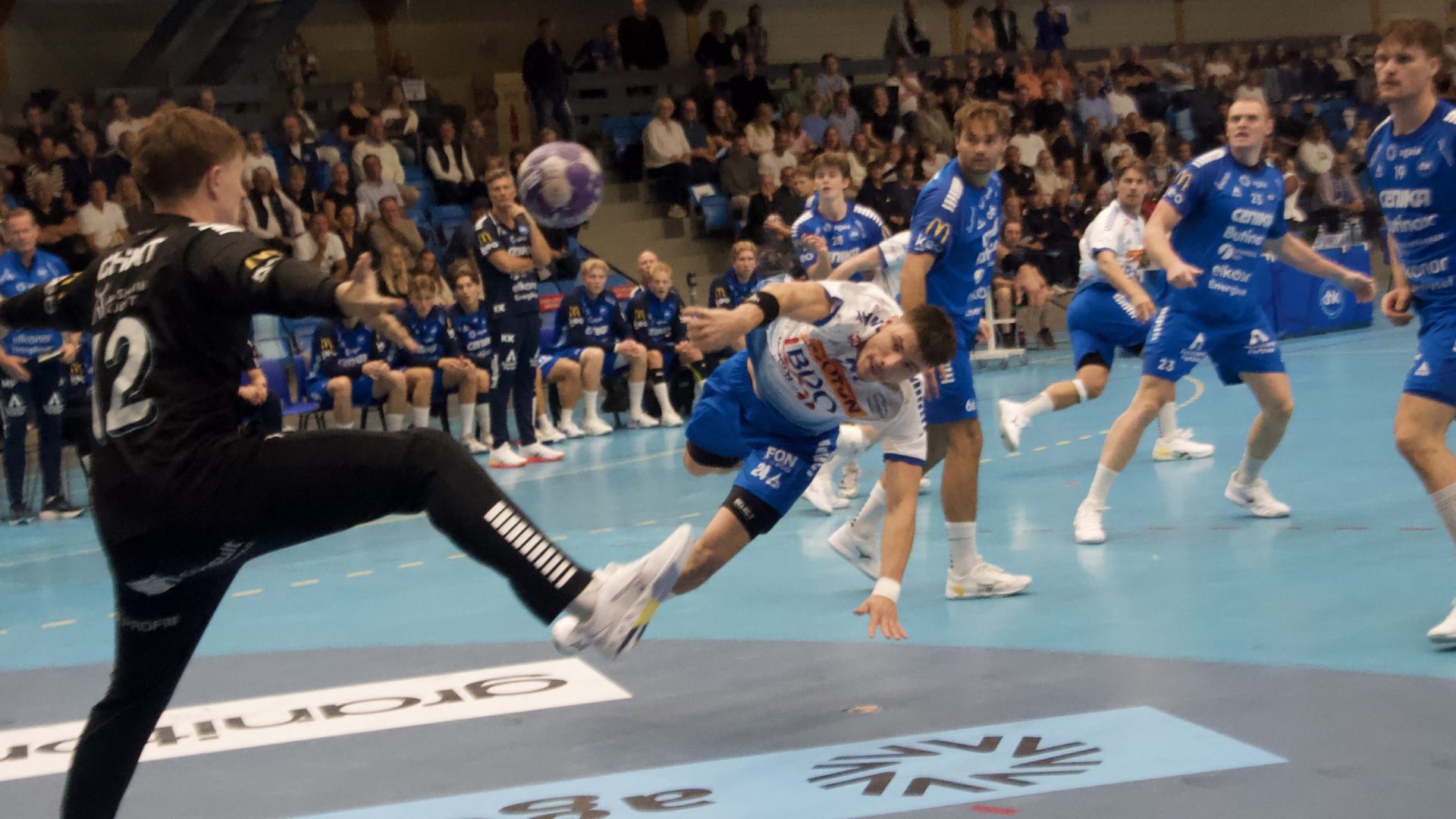 Ikke hadde de planlagt hvordan de skulle møte Felix Lunde heller. For to ganger på rappen fikk han gå helt uforstyrret opp fra ni meter og banket ballen i mål. Halvveis i omgangen ledet Sandefjord 7-5. Også mye takket være et meget bra forsvarsspill: Offensivt ute på skytterne, bevegelige inne på streken og god oppdekning på kantene.