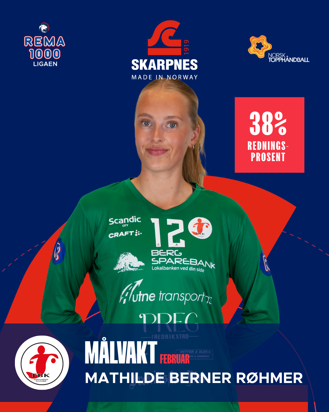 Med 49 redninger på fire kamper har Mathilde Berner Røhmer vært en avgjørende sisteskanse for Fredrikstad i februar. Hun står også med to scoringer og en redningsprosent på 38. Et snitt på 3,3 MEP understreker den stabile perioden hun har levert.