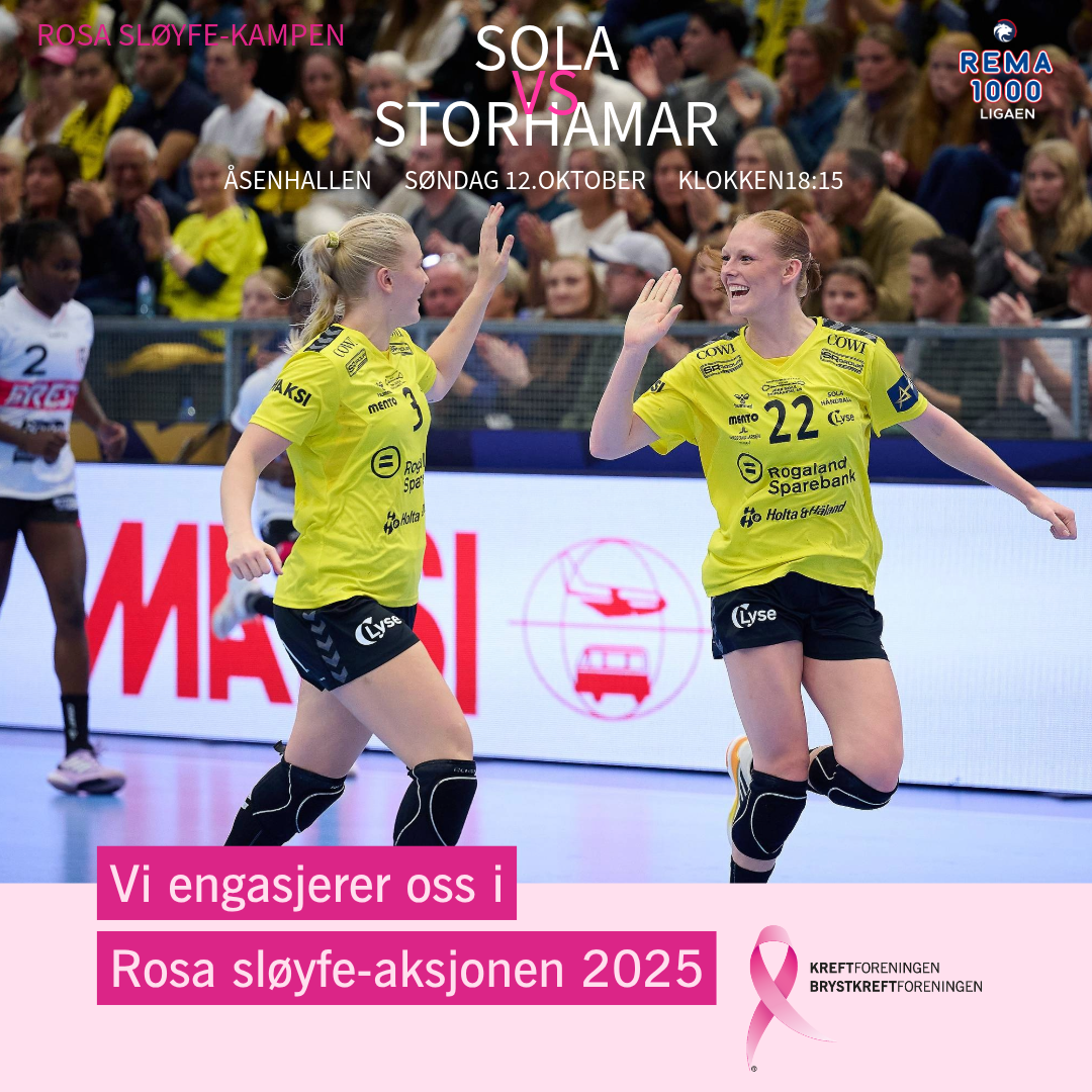 Søndag er det duket for en av sesongens store høydepunkter i Åsenhallen og REMA 1000-ligaen! Storhamar kommer på besøk for et oppgjør som alltid byr på spennende dueller og kamp helt til døra. Denne kampen vil ikke bare handle om 2 poeng. Kampen spilles til støtte for Rosa sløyfe-aksjonen, og Sola-jentene stiller i rosa drakter som etter kampen skal auksjoneres bort til inntekt for aksjonen.