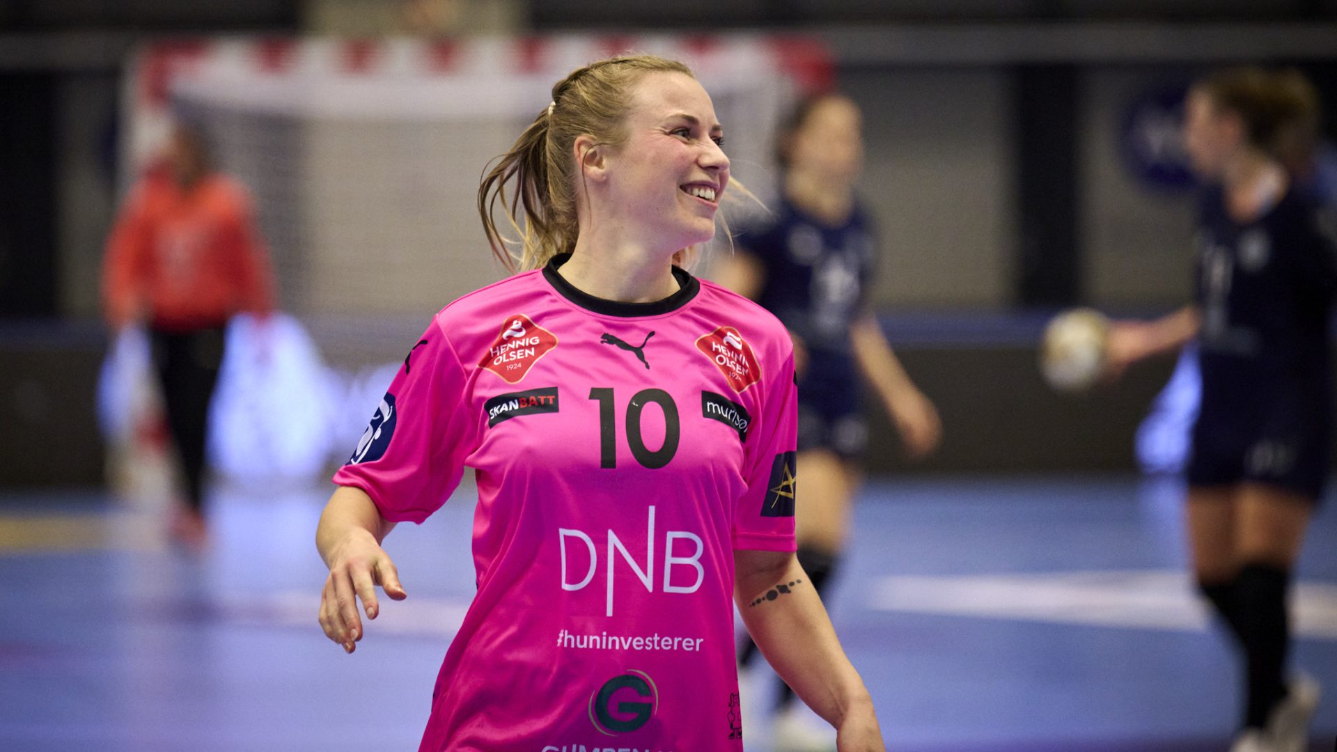 En smilende Vilde Jonassen som løper tilbake etter scoring. Et vakkert syn for alle som er glad i de rosa!